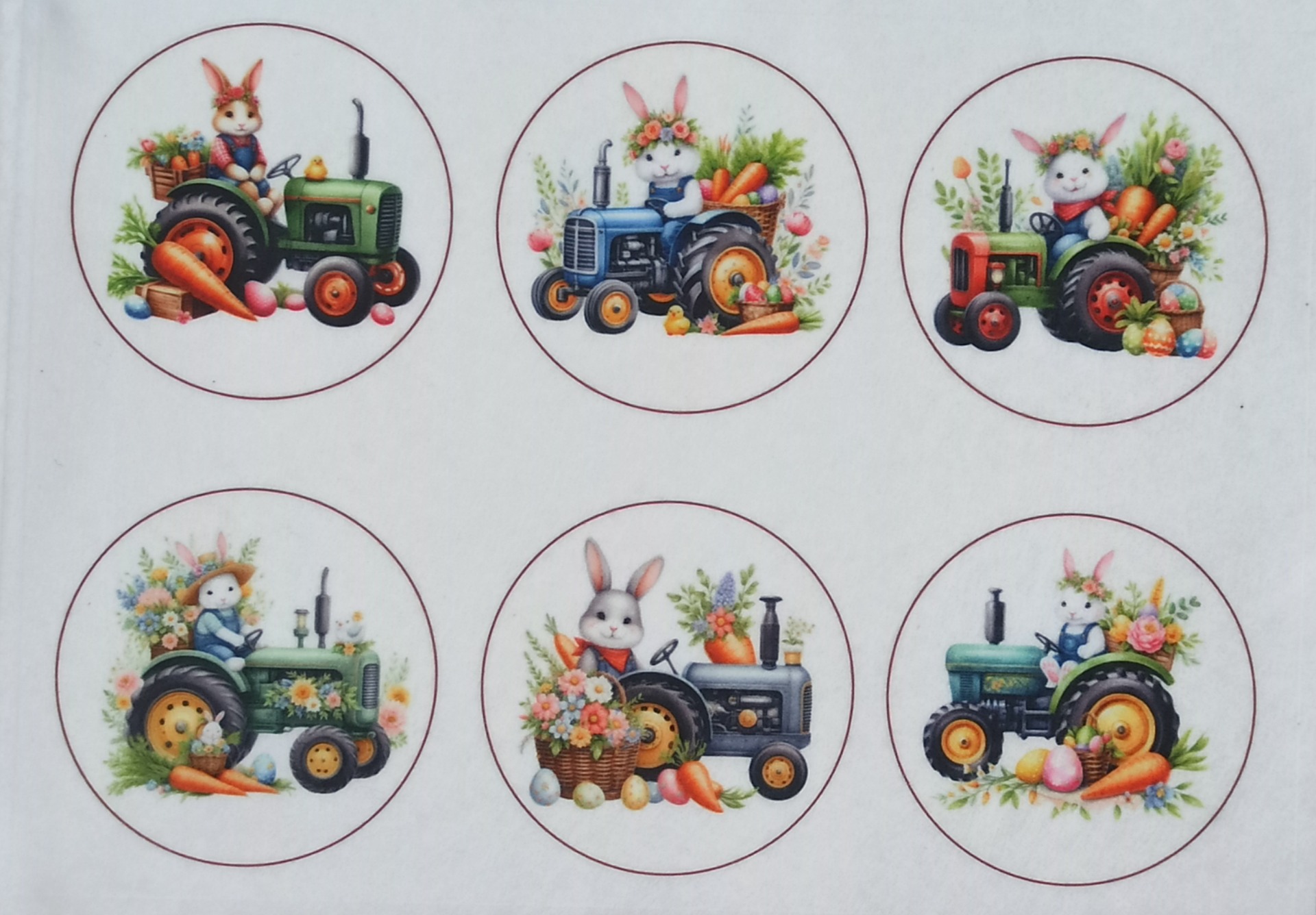 Húsvéti nyuszi traktorral körökben - mintás filclapok